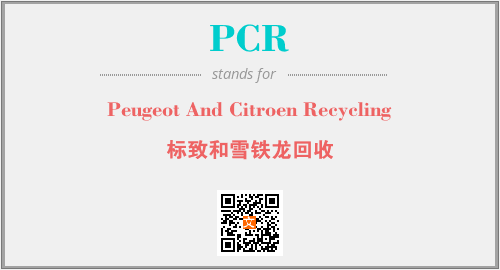上述内容是“Peugeot And Citroen Recycling”作为“PCR”的缩写,解释为“标致和雪铁龙回收”时的信息,以及英文缩略词PCR所代表的英文单词,其对应的中文拼音、详细解释以及在英文中的流行度和相关分类、应用领域及应用示例等。