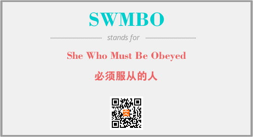 上述内容是“She Who Must Be Obeyed”作为“SWMBO”的缩写,解释为“必须服从的人”时的信息,以及英文缩略词SWMBO所代表的英文单词,其对应的中文拼音、详细解释以及在英文中的流行度和相关分类、应用领域及应用示例等。