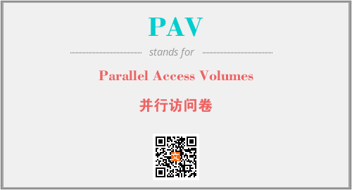 上述内容是“Parallel Access Volumes”作为“PAV”的缩写,解释为“并行访问卷”时的信息,以及英文缩略词PAV所代表的英文单词,其对应的中文拼音、详细解释以及在英文中的流行度和相关分类、应用领域及应用示例等。