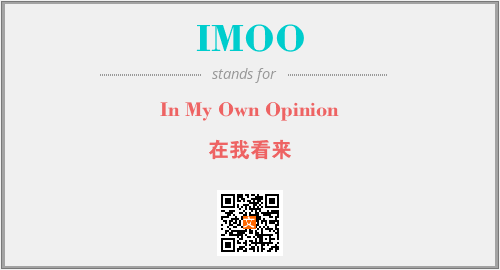 上述内容是“In My Own Opinion”作为“IMOO”的缩写,解释为“在我看来”时的信息,以及英文缩略词IMOO所代表的英文单词,其对应的中文拼音、详细解释以及在英文中的流行度和相关分类、应用领域及应用示例等。