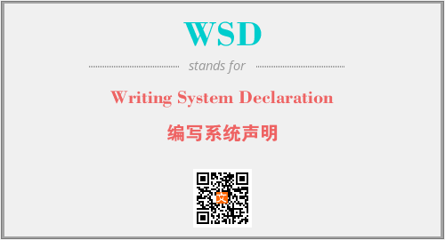 上述内容是“Writing System Declaration”作为“WSD”的缩写,解释为“编写系统声明”时的信息,以及英文缩略词WSD所代表的英文单词,其对应的中文拼音、详细解释以及在英文中的流行度和相关分类、应用领域及应用示例等。