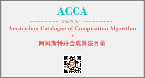 上述内容是“Amsterdam Catalogue of Composition Algorithms”作为“ACCA”的缩写,解释为“阿姆斯特丹合成算法目录”时的信息,以及英文缩略词ACCA所代表的英文单词,其对应的中文拼音、详细解释以及在英文中的流行度和相关分类、应用领域及应用示例等。