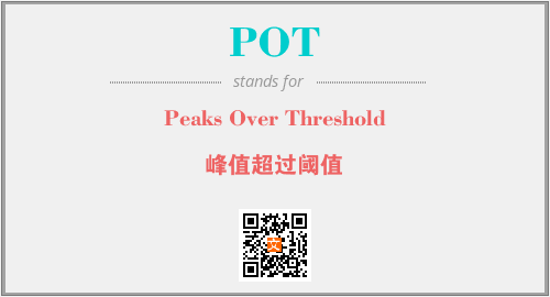 上述内容是“Peaks Over Threshold”作为“POT”的缩写,解释为“峰值超过阈值”时的信息,以及英文缩略词POT所代表的英文单词,其对应的中文拼音、详细解释以及在英文中的流行度和相关分类、应用领域及应用示例等。