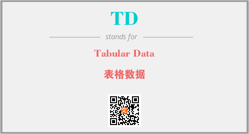 上述内容是“Tabular Data”作为“TD”的缩写,解释为“表格数据”时的信息,以及英文缩略词TD所代表的英文单词,其对应的中文拼音、详细解释以及在英文中的流行度和相关分类、应用领域及应用示例等。