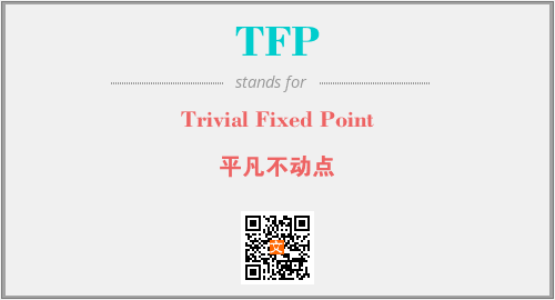 上述内容是“Trivial Fixed Point”作为“TFP”的缩写,解释为“平凡不动点”时的信息,以及英文缩略词TFP所代表的英文单词,其对应的中文拼音、详细解释以及在英文中的流行度和相关分类、应用领域及应用示例等。
