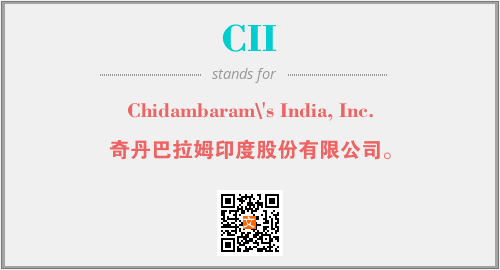 上述内容是“Chidambaram\'s India, Inc.”作为“CII”的缩写,解释为“奇丹巴拉姆印度股份有限公司。”时的信息,以及英文缩略词CII所代表的英文单词,其对应的中文拼音、详细解释以及在英文中的流行度和相关分类、应用领域及应用示例等。