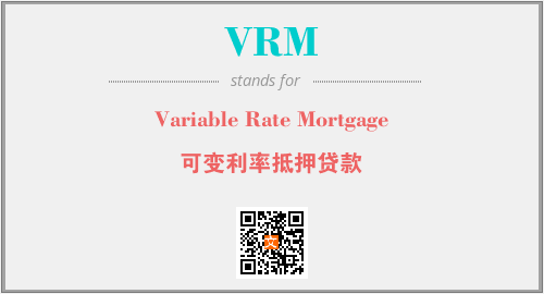 英文缩略词“VRM”经常作为“Variable Rate Mortgage”的英文缩写来使用,中文表示:“可变利率抵押贷款”。本文将详细介绍英文缩写词VRM所代表英文单词,其对应的中文拼音、详细解释以及在英语中的流行度。此外,还有关于缩略词VRM的分类、应用领域及相关应用示例等。