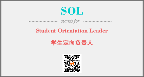 以上为Student Orientation Leader英文缩略词SOL的中文解释,以及该英文缩写在英语的流行度、分类和应用领域方面的信息。