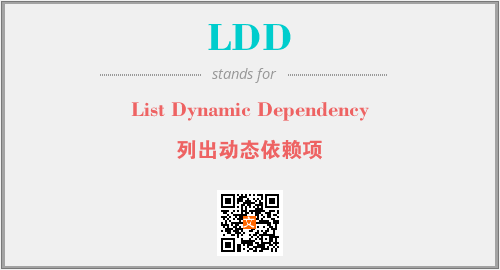 上述内容是“List Dynamic Dependency”作为“LDD”的缩写,解释为“列出动态依赖项”时的信息,以及英文缩略词LDD所代表的英文单词,其对应的中文拼音、详细解释以及在英文中的流行度和相关分类、应用领域及应用示例等。