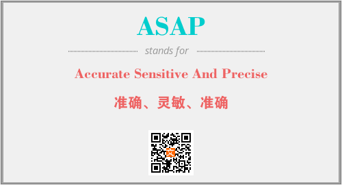 上述内容是“Accurate Sensitive And Precise”作为“ASAP”的缩写,解释为“准确、灵敏、准确”时的信息,以及英文缩略词ASAP所代表的英文单词,其对应的中文拼音、详细解释以及在英文中的流行度和相关分类、应用领域及应用示例等。