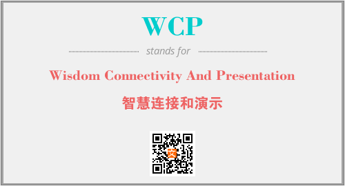 上述内容是“Wisdom Connectivity And Presentation”作为“WCP”的缩写,解释为“智慧连接和演示”时的信息,以及英文缩略词WCP所代表的英文单词,其对应的中文拼音、详细解释以及在英文中的流行度和相关分类、应用领域及应用示例等。