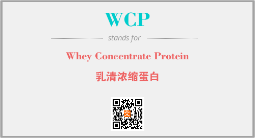 上述内容是“Whey Concentrate Protein”作为“WCP”的缩写,解释为“乳清浓缩蛋白”时的信息,以及英文缩略词WCP所代表的英文单词,其对应的中文拼音、详细解释以及在英文中的流行度和相关分类、应用领域及应用示例等。