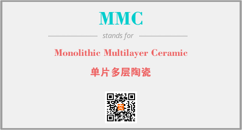 上述内容是“Monolithic Multilayer Ceramic”作为“MMC”的缩写,解释为“单片多层陶瓷”时的信息,以及英文缩略词MMC所代表的英文单词,其对应的中文拼音、详细解释以及在英文中的流行度和相关分类、应用领域及应用示例等。