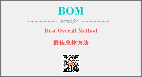 上述内容是“Best Overall Method”作为“BOM”的缩写,解释为“最佳总体方法”时的信息,以及英文缩略词BOM所代表的英文单词,其对应的中文拼音、详细解释以及在英文中的流行度和相关分类、应用领域及应用示例等。