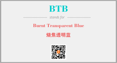 英文缩略词“BTB”经常作为“Burnt Transparent Blue”的英文缩写来使用,中文表示:“烧焦透明蓝”。本文将详细介绍英文缩写词BTB所代表英文单词,其对应的中文拼音、详细解释以及在英语中的流行度。此外,还有关于缩略词BTB的分类、应用领域及相关应用示例等。