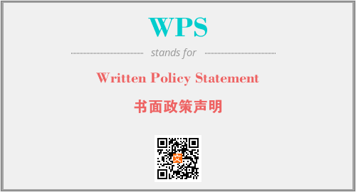 上述内容是“Written Policy Statement”作为“WPS”的缩写,解释为“书面政策声明”时的信息,以及英文缩略词WPS所代表的英文单词,其对应的中文拼音、详细解释以及在英文中的流行度和相关分类、应用领域及应用示例等。