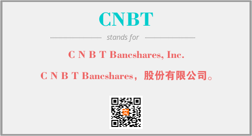 上述内容是“C N B T Bancshares, Inc.”作为“CNBT”的缩写,解释为“C N B T Bancshares,股份有限公司。”时的信息,以及英文缩略词CNBT所代表的英文单词,其对应的中文拼音、详细解释以及在英文中的流行度和相关分类、应用领域及应用示例等。