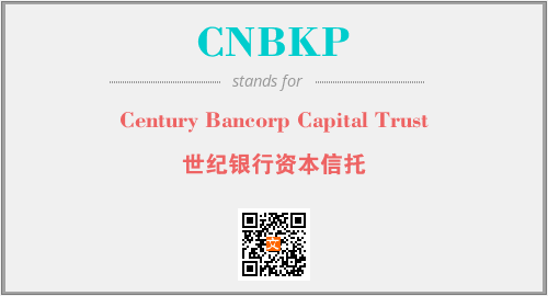 上述内容是“Century Bancorp Capital Trust”作为“CNBKP”的缩写,解释为“世纪银行资本信托”时的信息,以及英文缩略词CNBKP所代表的英文单词,其对应的中文拼音、详细解释以及在英文中的流行度和相关分类、应用领域及应用示例等。