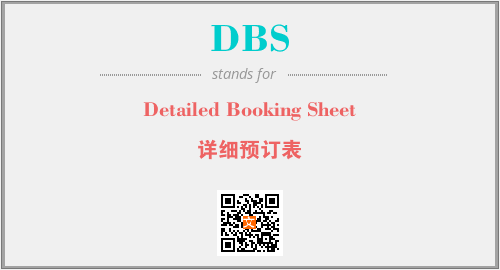 上述内容是“Detailed Booking Sheet”作为“DBS”的缩写,解释为“详细预订表”时的信息,以及英文缩略词DBS所代表的英文单词,其对应的中文拼音、详细解释以及在英文中的流行度和相关分类、应用领域及应用示例等。