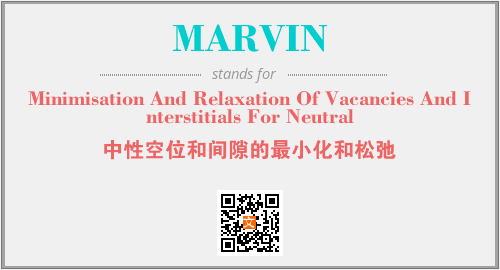 上述内容是“Minimisation And Relaxation Of Vacancies And Interstitials For Neutral”作为“MARVIN”的缩写,解释为“中性空位和间隙的最小化和松弛”时的信息,以及英文缩略词MARVIN所代表的英文单词,其对应的中文拼音、详细解释以及在英文中的流行度和相关分类、应用领域及应用示例等。