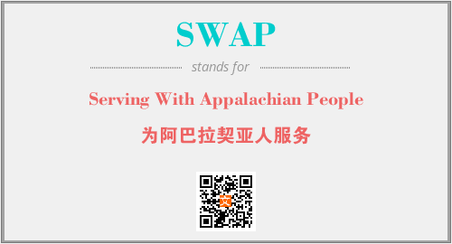 以上为Serving With Appalachian People英文缩略词SWAP的中文解释,以及该英文缩写在英语的流行度、分类和应用领域方面的信息。