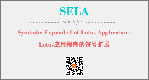 上述内容是“Symbolic Expanded of Lotus Applications”作为“SELA”的缩写,解释为“Lotus应用程序的符号扩展”时的信息,以及英文缩略词SELA所代表的英文单词,其对应的中文拼音、详细解释以及在英文中的流行度和相关分类、应用领域及应用示例等。