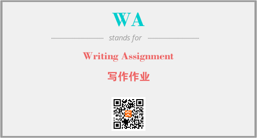 英文缩略词“WA”经常作为“Writing Assignment”的英文缩写来使用,中文表示:“写作作业”。本文将详细介绍英文缩写词WA所代表英文单词,其对应的中文拼音、详细解释以及在英语中的流行度。此外,还有关于缩略词WA的分类、应用领域及相关应用示例等。