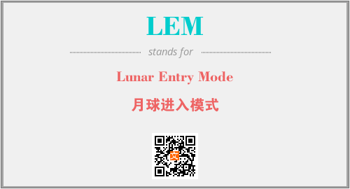 英文缩略词“LEM”经常作为“Lunar Entry Mode”的英文缩写来使用,中文表示:“月球进入模式”。本文将详细介绍英文缩写词LEM所代表英文单词,其对应的中文拼音、详细解释以及在英语中的流行度。此外,还有关于缩略词LEM的分类、应用领域及相关应用示例等。