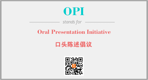 上述内容是“Oral Presentation Initiative”作为“OPI”的缩写,解释为“口头陈述倡议”时的信息,以及英文缩略词OPI所代表的英文单词,其对应的中文拼音、详细解释以及在英文中的流行度和相关分类、应用领域及应用示例等。