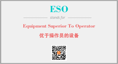 上述内容是“Equipment Superior To Operator”作为“ESO”的缩写,解释为“优于操作员的设备”时的信息,以及英文缩略词ESO所代表的英文单词,其对应的中文拼音、详细解释以及在英文中的流行度和相关分类、应用领域及应用示例等。