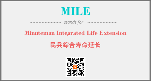英文缩略词“MILE”经常作为“Minuteman Integrated Life Extension”的英文缩写来使用,中文表示:“民兵综合寿命延长”。本文将详细介绍英文缩写词MILE所代表英文单词,其对应的中文拼音、详细解释以及在英语中的流行度。此外,还有关于缩略词MILE的分类、应用领域及相关应用示例等。