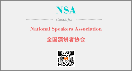 上述内容是“National Speakers Association”作为“NSA”的缩写,解释为“全国演讲者协会”时的信息,以及英文缩略词NSA所代表的英文单词,其对应的中文拼音、详细解释以及在英文中的流行度和相关分类、应用领域及应用示例等。