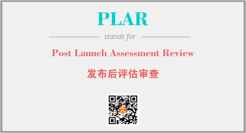英文缩略词“PLAR”经常作为“Post Launch Assessment Review”的英文缩写来使用,中文表示:“发布后评估审查”。本文将详细介绍英文缩写词PLAR所代表英文单词,其对应的中文拼音、详细解释以及在英语中的流行度。此外,还有关于缩略词PLAR的分类、应用领域及相关应用示例等。