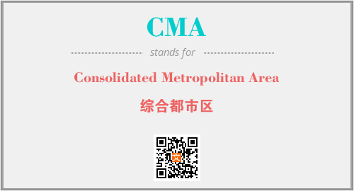 英文缩略词“CMA”经常作为“Consolidated Metropolitan Area”的英文缩写来使用,中文表示:“综合都市区”。本文将详细介绍英文缩写词CMA所代表英文单词,其对应的中文拼音、详细解释以及在英语中的流行度。此外,还有关于缩略词CMA的分类、应用领域及相关应用示例等。