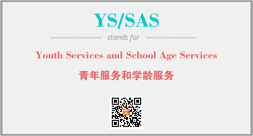 上述内容是“Youth Services and School Age Services”作为“YS/SAS”的缩写,解释为“青年服务和学龄服务”时的信息,以及英文缩略词YS/SAS所代表的英文单词,其对应的中文拼音、详细解释以及在英文中的流行度和相关分类、应用领域及应用示例等。