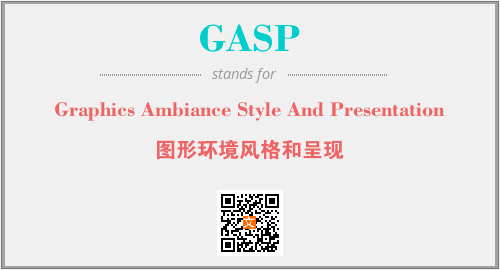 上述内容是“Graphics Ambiance Style And Presentation”作为“GASP”的缩写,解释为“图形环境风格和呈现”时的信息,以及英文缩略词GASP所代表的英文单词,其对应的中文拼音、详细解释以及在英文中的流行度和相关分类、应用领域及应用示例等。