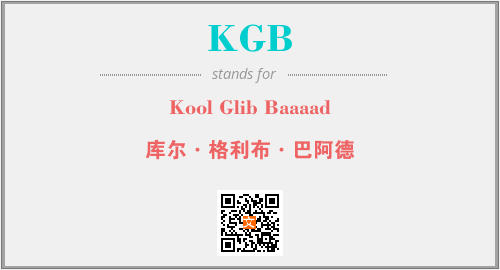 上述内容是“Kool Glib Baaaad”作为“KGB”的缩写,解释为“库尔·格利布·巴阿德”时的信息,以及英文缩略词KGB所代表的英文单词,其对应的中文拼音、详细解释以及在英文中的流行度和相关分类、应用领域及应用示例等。