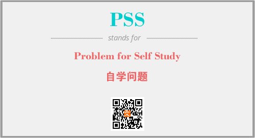 英文缩略词“PSS”经常作为“Problem for Self Study”的英文缩写来使用,中文表示:“自学问题”。本文将详细介绍英文缩写词PSS所代表英文单词,其对应的中文拼音、详细解释以及在英语中的流行度。此外,还有关于缩略词PSS的分类、应用领域及相关应用示例等。