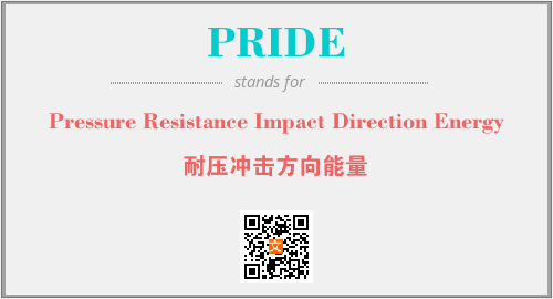 上述内容是“Pressure Resistance Impact Direction Energy”作为“PRIDE”的缩写,解释为“耐压冲击方向能量”时的信息,以及英文缩略词PRIDE所代表的英文单词,其对应的中文拼音、详细解释以及在英文中的流行度和相关分类、应用领域及应用示例等。