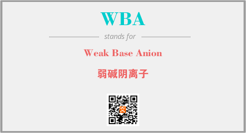 英文缩略词“WBA”经常作为“Weak Base Anion”的英文缩写来使用,中文表示:“弱碱阴离子”。本文将详细介绍英文缩写词WBA所代表英文单词,其对应的中文拼音、详细解释以及在英语中的流行度。此外,还有关于缩略词WBA的分类、应用领域及相关应用示例等。