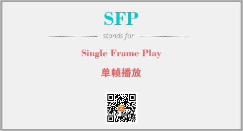 英文缩略词“SFP”经常作为“Single Frame Play”的英文缩写来使用,中文表示:“单帧播放”。本文将详细介绍英文缩写词SFP所代表英文单词,其对应的中文拼音、详细解释以及在英语中的流行度。此外,还有关于缩略词SFP的分类、应用领域及相关应用示例等。