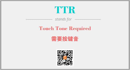 上述内容是“Touch Tone Required”作为“TTR”的缩写,解释为“需要按键音”时的信息,以及英文缩略词TTR所代表的英文单词,其对应的中文拼音、详细解释以及在英文中的流行度和相关分类、应用领域及应用示例等。