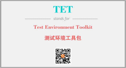 英文缩略词“TET”经常作为“Test Environment Toolkit”的英文缩写来使用,中文表示:“测试环境工具包”。本文将详细介绍英文缩写词TET所代表英文单词,其对应的中文拼音、详细解释以及在英语中的流行度。此外,还有关于缩略词TET的分类、应用领域及相关应用示例等。