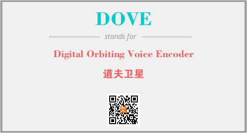 上述内容是“Digital Orbiting Voice Encoder”作为“DOVE”的缩写,解释为“道夫卫星”时的信息,以及英文缩略词DOVE所代表的英文单词,其对应的中文拼音、详细解释以及在英文中的流行度和相关分类、应用领域及应用示例等。