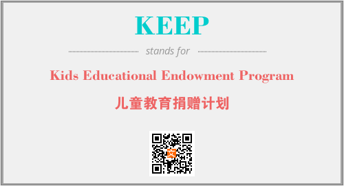 上述内容是“Kids Educational Endowment Program”作为“KEEP”的缩写,解释为“儿童教育捐赠计划”时的信息,以及英文缩略词KEEP所代表的英文单词,其对应的中文拼音、详细解释以及在英文中的流行度和相关分类、应用领域及应用示例等。