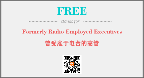 上述内容是“Formerly Radio Employed Executives”作为“FREE”的缩写,解释为“曾受雇于电台的高管”时的信息,以及英文缩略词FREE所代表的英文单词,其对应的中文拼音、详细解释以及在英文中的流行度和相关分类、应用领域及应用示例等。