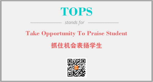 英文缩略词“TOPS”经常作为“Take Opportunity To Praise Student”的英文缩写来使用,中文表示:“抓住机会表扬学生”。本文将详细介绍英文缩写词TOPS所代表英文单词,其对应的中文拼音、详细解释以及在英语中的流行度。此外,还有关于缩略词TOPS的分类、应用领域及相关应用示例等。