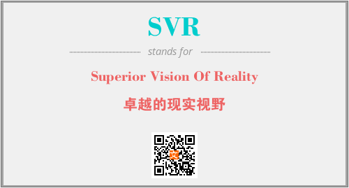以上为Superior Vision Of Reality英文缩略词SVR的中文解释,以及该英文缩写在英语的流行度、分类和应用领域方面的信息。