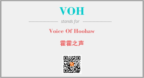 上述内容是“Voice Of Hoohaw”作为“VOH”的缩写,解释为“霍霍之声”时的信息,以及英文缩略词VOH所代表的英文单词,其对应的中文拼音、详细解释以及在英文中的流行度和相关分类、应用领域及应用示例等。