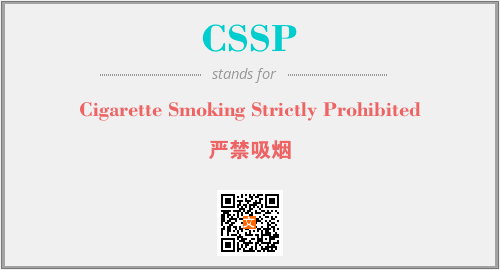 英文缩略词“CSSP”经常作为“Cigarette Smoking Strictly Prohibited”的英文缩写来使用,中文表示:“严禁吸烟”。本文将详细介绍英文缩写词CSSP所代表英文单词,其对应的中文拼音、详细解释以及在英语中的流行度。此外,还有关于缩略词CSSP的分类、应用领域及相关应用示例等。